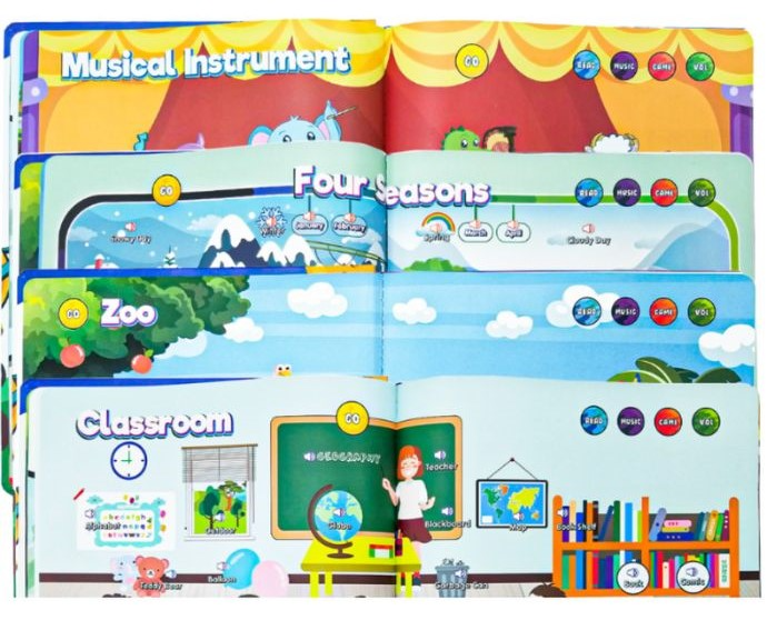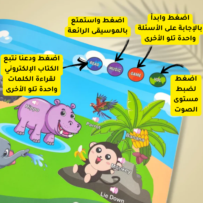 الآن يمكن لطفلك تعلم الإنجليزية بسهولة ومتعة! الكتاب الصوتي يتضمن أكثر من 420 مفردة تغطي 16 موضوعًا مثل عالم المحيط، وسائل النقل، بالإضافة إلى مواضيع أخرى، مع أصوات وصور رائعة تنمي المهارات اللغوية بعيدًا عن الملل