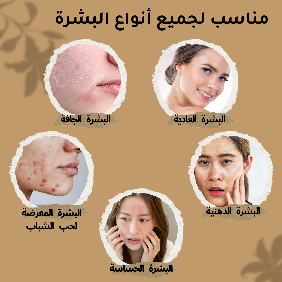 آمن للاستخدام لجميع أنواع البشرة، بما في ذلك البشرة الحساسة